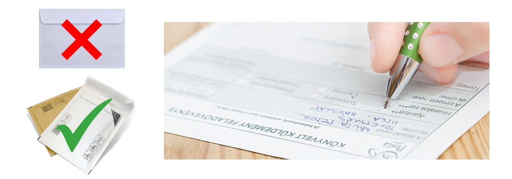 Csomagként vagy ajánlott levélként házhoz szállítva add fel címünkre!